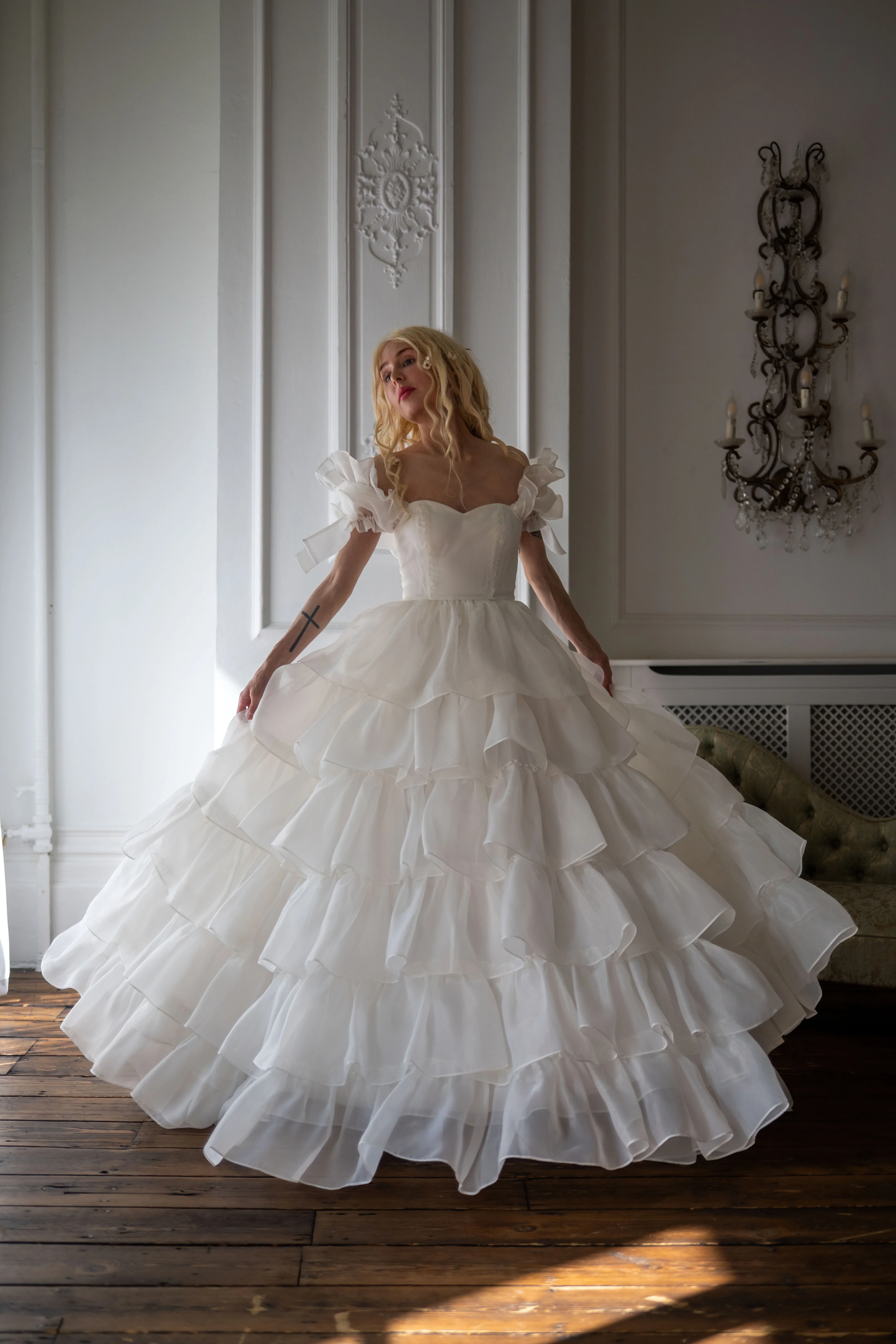 - Exquisitely romantic gown with 6 tiers of cascading ruffles